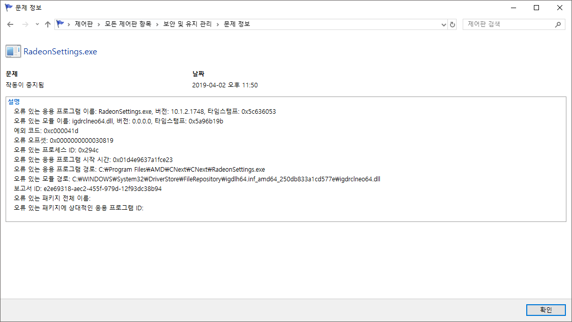경로 들어가서 igdrclneo64.dll 삭제한 뒤 AMD Setting 실행하니 정상적으로 실행되었음. 신기하게도 화면 멈추는 현상도 더 이상 발생 안 함.
