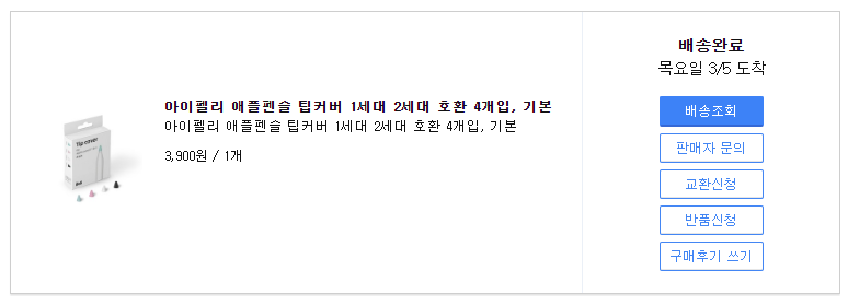 올레포빅 필름 위에 애플펜슬을 사용하니 너무 미끄러웠다. 종이 위에 연필로 쓰는 느낌이 아닌, 유리위에 수성사인펜으로 글씨를 쓰는 느낌이라 은근히 불편했다. 그래서 쿠팡에서 애플펜슬 펜촉 커버를 찾다가 아이펠리사에서 나온 팁 커버를 구매하게 되었다. 다른 팁커버도 많았는데 국산이기도하고, 포장도 깔끔하게 생겨서 이걸로 결정했다.