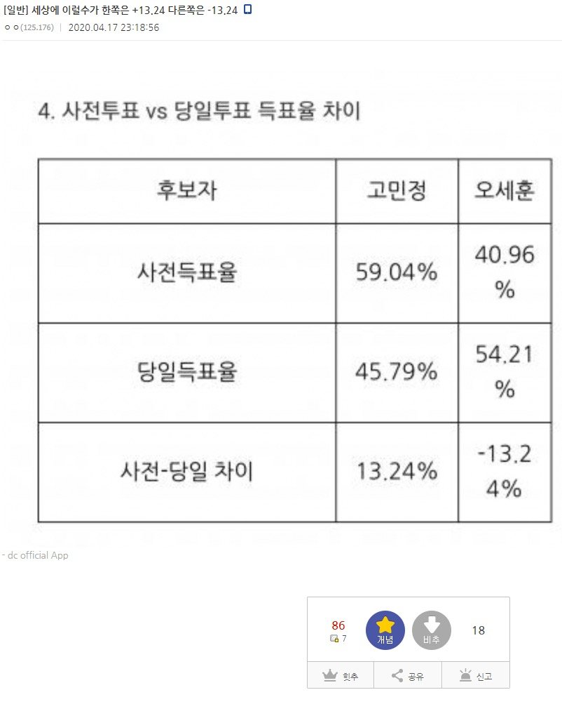 관내와 관외투표 비율이 비슷하면 '티나게 조작했네'