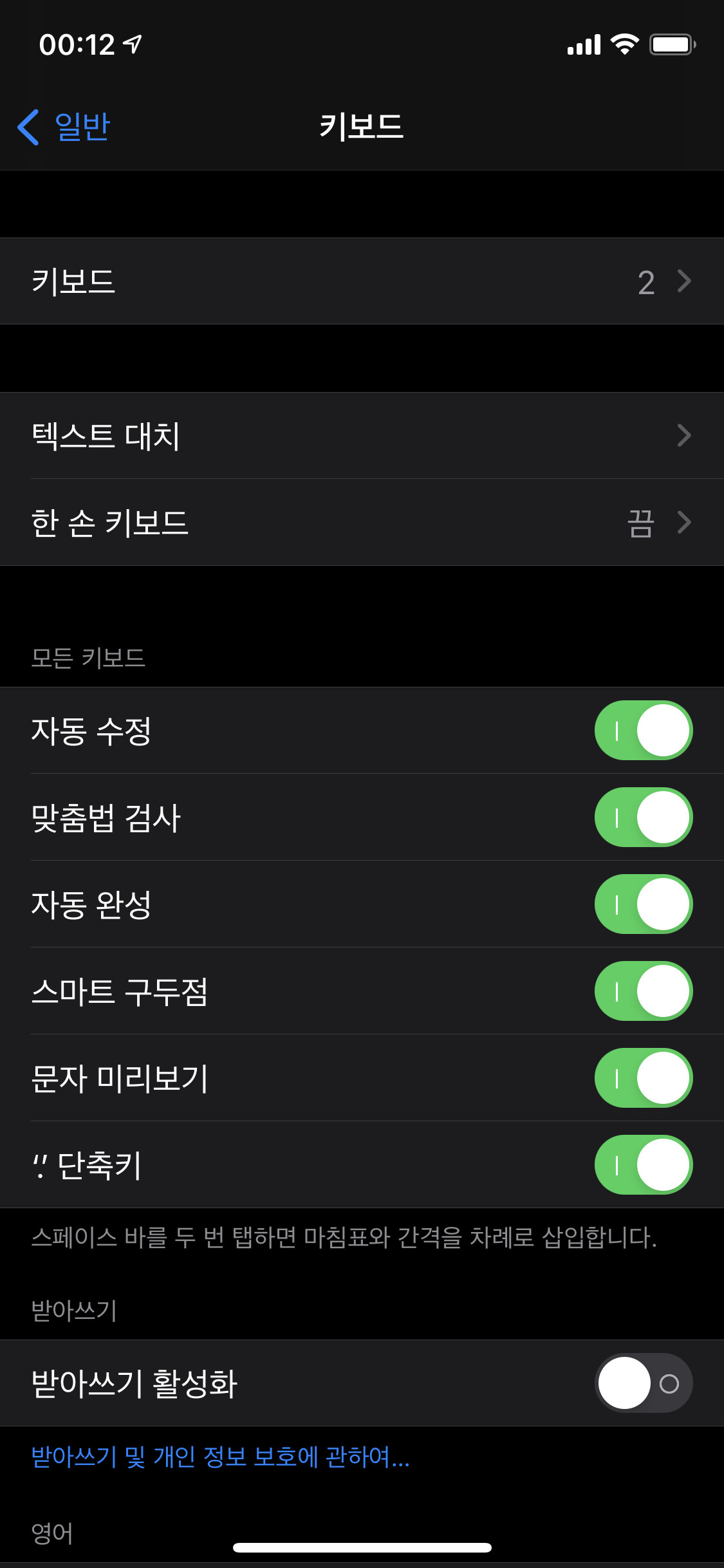 2. 설정 - 일반 - 키보드로 이동한다.