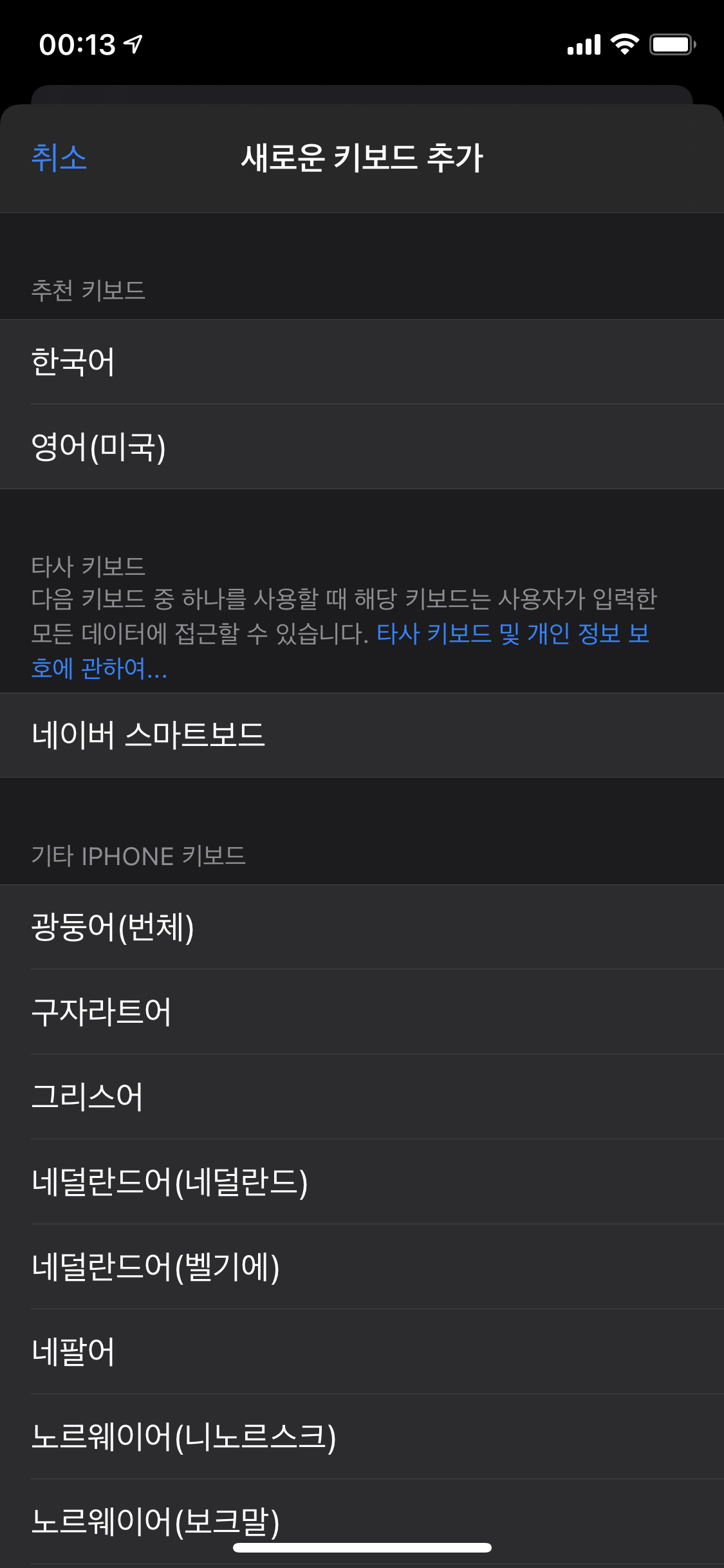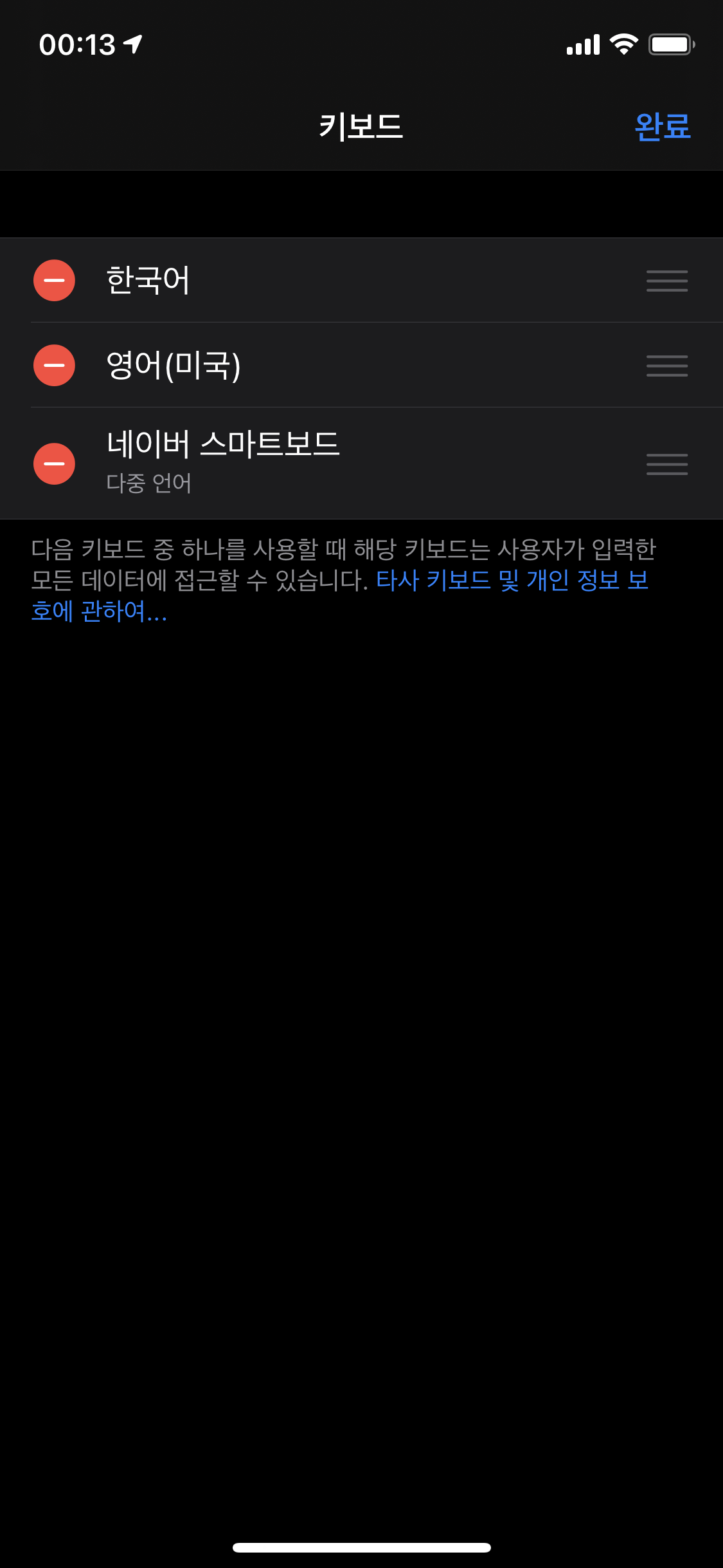iOS와 iPadOS에서는 써드파티 키보드를 설치하고, 사용할 수 있다. 애플에서 기본으로 제공하는 키보드도 좋지만, 쿼티와 천지인만 제공하기 때문에, 단모음 키보드 같이 다른 형태의 키보드를 사용하기 위해서는 앱스토어에서 키보드 어플을 설치해야만 한다. 나도 아이폰 기본 키보드가 오류가 제일 적고, 깔끔해서 자주 사용해왔지만, 단모음 키보드를 사용하기 위해 네이버 키보드를 설치했다.