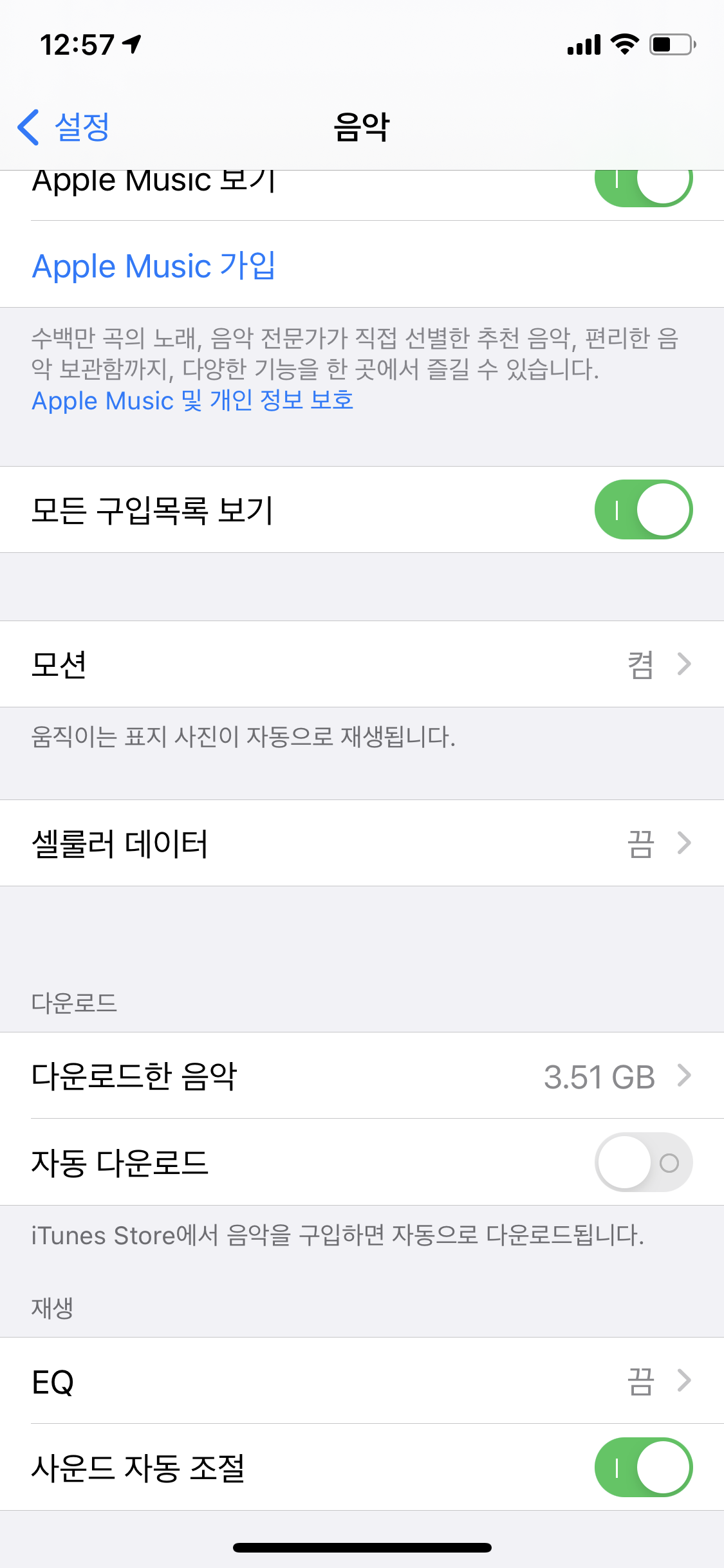 1. 설정 - 음악 으로 이동한다.