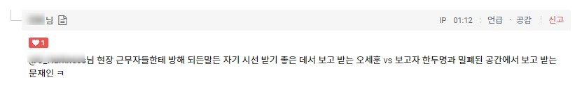 오히려 대깨문들은 반박을 당하니 "오세훈은 근무자들한테 방해된다... 문재인은 보고자 한두명과 밀폐된 공간에서 보고받는거다" 라고 변명을 해댄다. 아니 언뜻봐도 8명은 되어보이는데...? 대깨문들은 정상적인 사고가 불가능 한 것 인가? 오세훈을 지지하지 않는다고 말도안되는 이유로 비판 아닌 비난을 하는 모습이 이해가 안간다. 반박당하니 상상의 나래를 펼쳐서 "오세훈은 방해되고 있거든요!" 라고 주장하는 것도 이해되지 않는다.